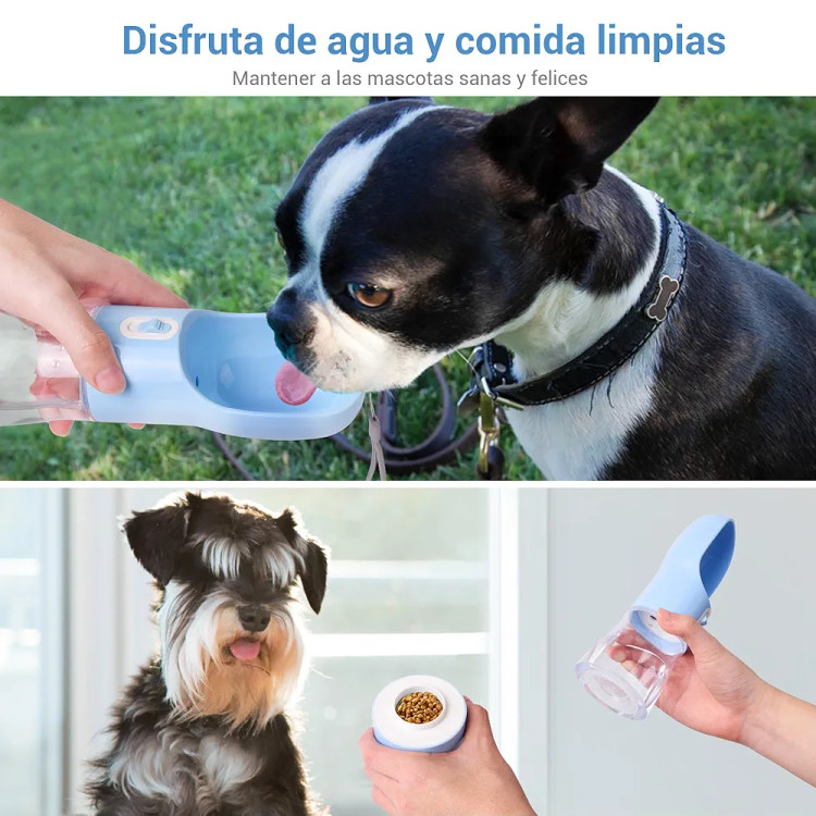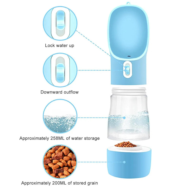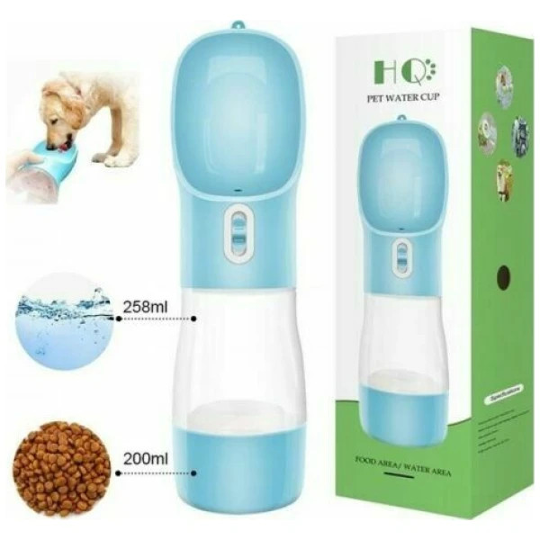 🔹 طراحی دو منظوره (2 در 1) – دارای دو محفظه مجزا در یک بطری؛ یک بخش برای آب و بخش دیگر برای غذا. این طراحی هوشمندانه تمام نیازهای آب و غذای سگ یا گربه شما را در سفر یا پیادهروی برطرف میکند.