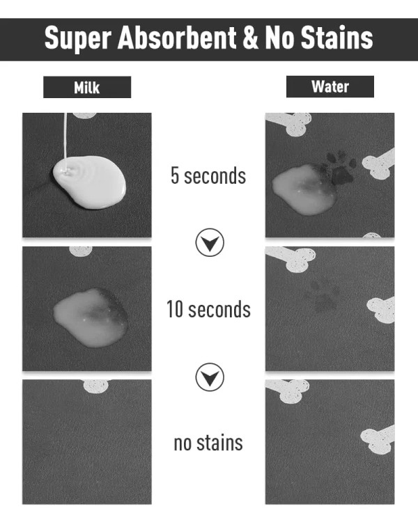 لوازم حیوانات خانگی: این زیرانداز تغذیه و آب برای سگها، گربهها، توله سگها یا سایر حیوانات خانگی مناسب است. این زیرانداز غذای سگ به اندازه کافی بزرگ است که نه تنها ظرف غذا و آب و فیدر اتوماتیک را در خود جای میدهد، بلکه به عنوان یک زیرانداز خشککن مخصوص زیرانداز آب سگ نیز عمل میکند. بگذارید حیوان خانگی محبوب شما مجموعه کاملی از لوازم اختصاصی را داشته باشد.