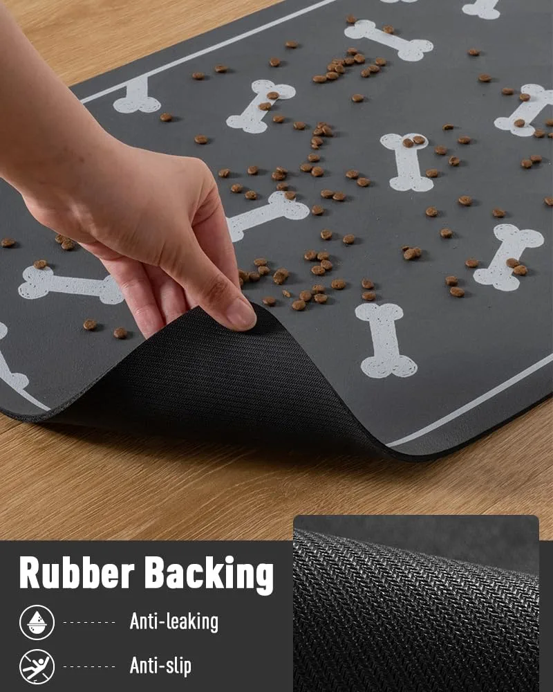ضد نشت و ضد لغزش: پشت لاستیکی ۱۰۰٪ ضد لغزش، زیرانداز غذای سگ را در جای خود نگه میدارد، مهم نیست حیوان خانگی شما چگونه آن را هل میدهد. پشت لاستیکی ضد آب از جاری شدن آب از کف جلوگیری میکند. زیراندازهای غذا و آب حیوانات خانگی باعث خوردگی کف نمیشوند و سایش کف را کاهش میدهند. تمیز کردن و نگهداری آسان: پس از مدتی استفاده از این زیرانداز کاسه سگ، کافیست آن را بلند کرده و سریع تمیز کنید. کافیست کف آن را خشک کنید و برای استفاده بعدی دوباره سر جایش قرار دهید. این زیرانداز تغذیه سگ را میتوان برای حمل آسان و صرفهجویی در فضا لوله کرد. یک وسیله جانبی آسان برای نگهداری توله سگ یا گربه.