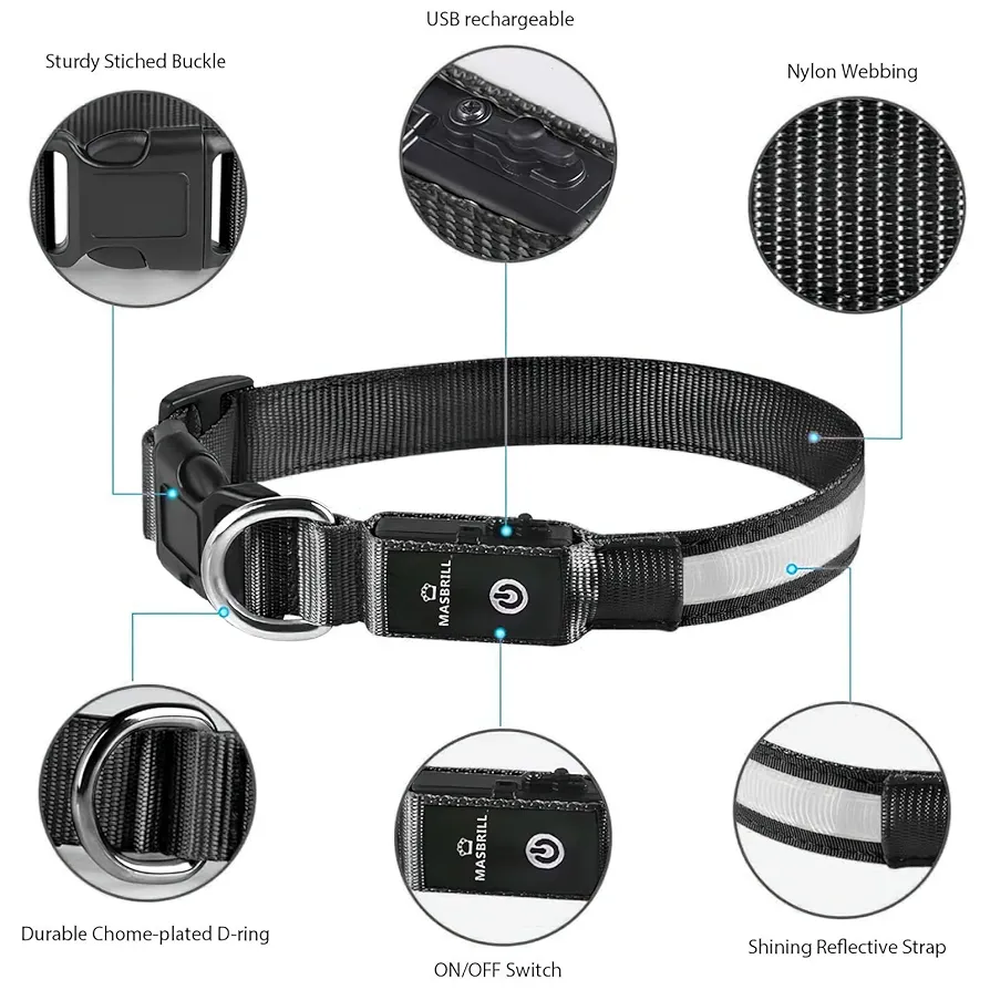 قلاده گردنبندی چراغدار سگ برند MASBRILL (رنگ آبی، سایز S)