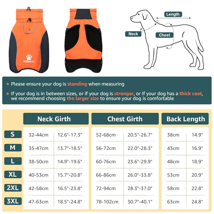 پیش از خرید، اندازه دور گردن، دور سینه و طول پشت سگ خود را اندازهگیری کنید.