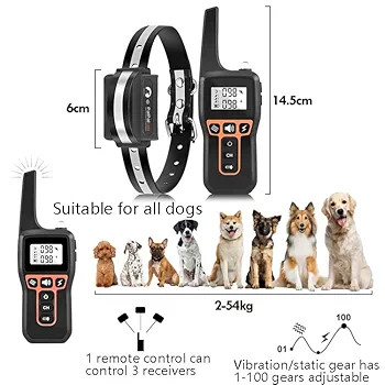 امکان آموزش همزمان تا ۳ سگ با یک ریموت – شامل صدا، ویبره و شوک با شدت قابل تنظیم (۰ تا ۱۰۰ سطح).