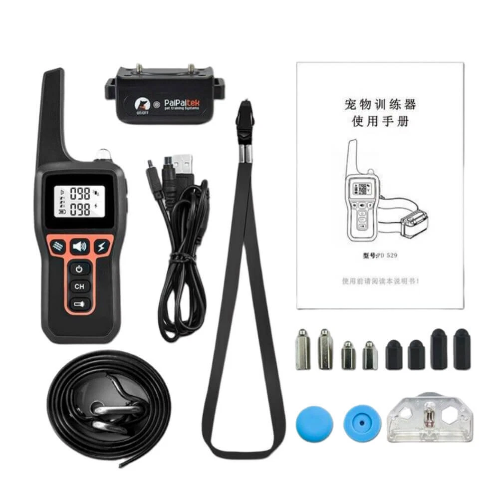 امکان آموزش همزمان تا ۳ سگ با یک ریموت – شامل صدا، ویبره و شوک با شدت قابل تنظیم (۰ تا ۱۰۰ سطح).