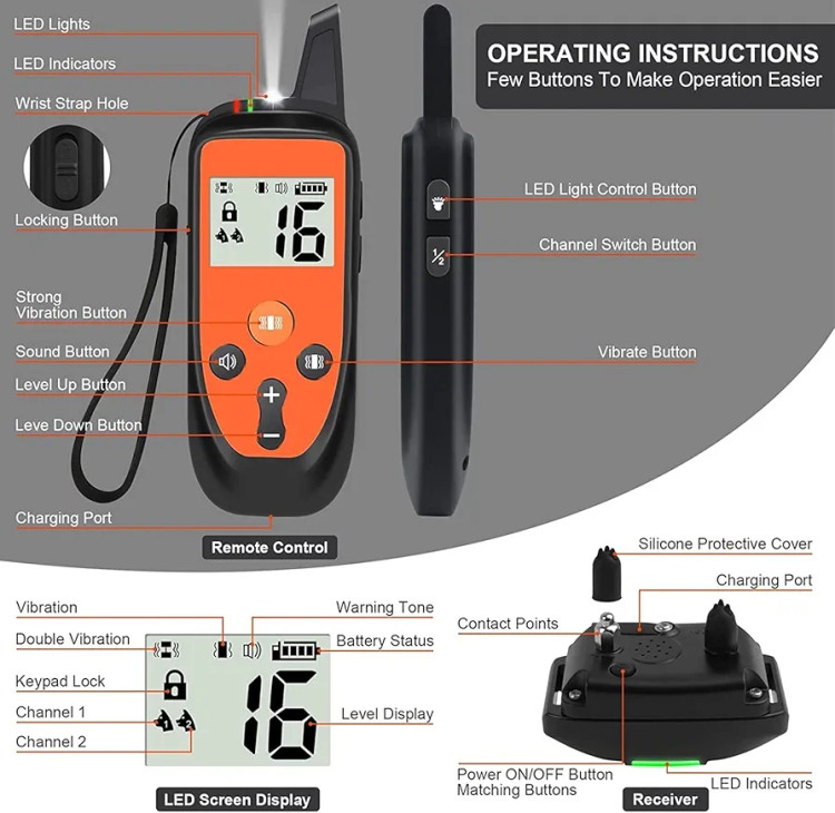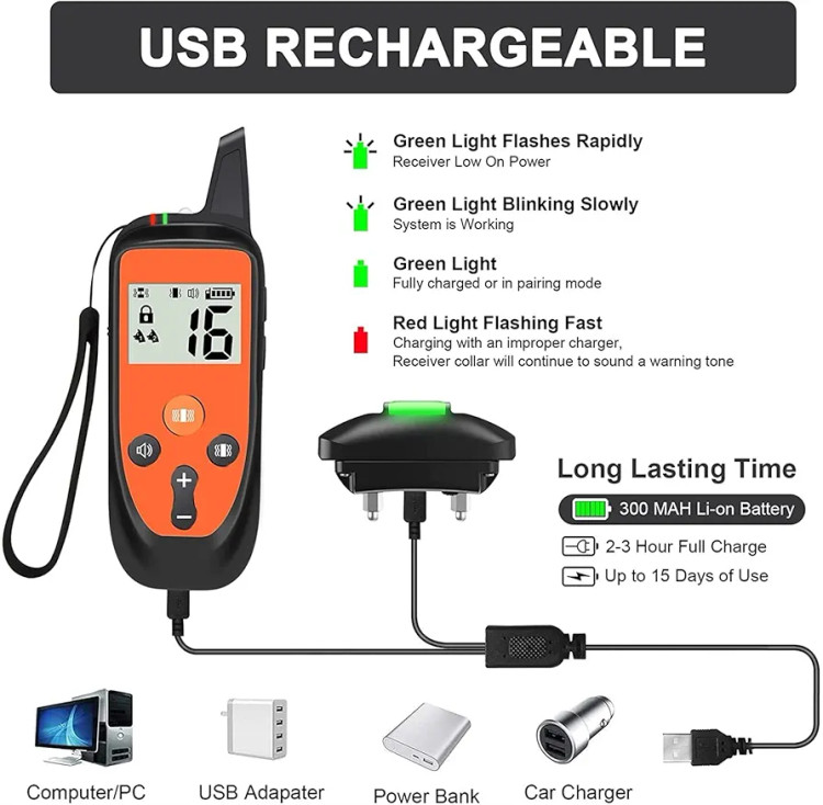 برد 3280 فوت (۱۰۰۰ متر) برای کنترل سگ در باغ، پارک یا محیط باز