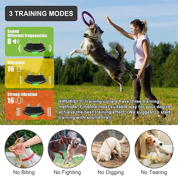 قلاده آموزشی و ضد پارس سگ IHPUKIDI دارای دو حالت آموزشی صدا و دیبره– بدون شوک، ایمن و ضد آب