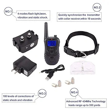 قلاده آموزش سگ 2 در 1 – دارای 3 حالت آموزشی بوق، لرزش و شوک | ضدآب و با برد 1000 فوت | مناسب برای تمامی نژادهای سگ(بار آمازون)