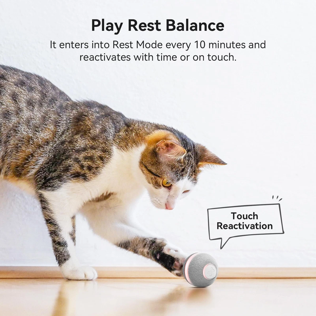 با برخورد به دیوار یا مانع، مسیر حرکت خود را عوض میکند و در گوشهها گیر نمیافتد. همچنین پس از 10 دقیقه بازی، 30 دقیقه استراحت میکند تا گربهتان بیش از حد خسته نشود.