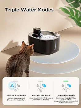 گربهها عاشق پرسهزدن در خانه هستند — این آبخوری شارژی بدون نیاز به سیم، به آنها آزادی کامل میدهد و از جویدن کابلها جلوگیری میکند.