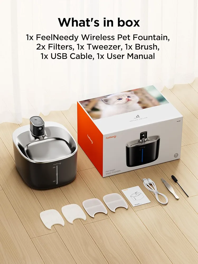 ظرف آب اتوماتیک سگ و گربه FEELNEEDY شارژی، سنسوردار، با کاسه استیل ضدزنگ ۴ لیتری