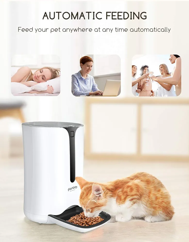 با این دستگاه میتوانید زمان و مقدار غذا را دقیقاً تنظیم کنید و مطمئن شوید حیوانتان همیشه غذای کافی و تازه دریافت میکند، حتی زمانی که شما در خانه نیستید.
