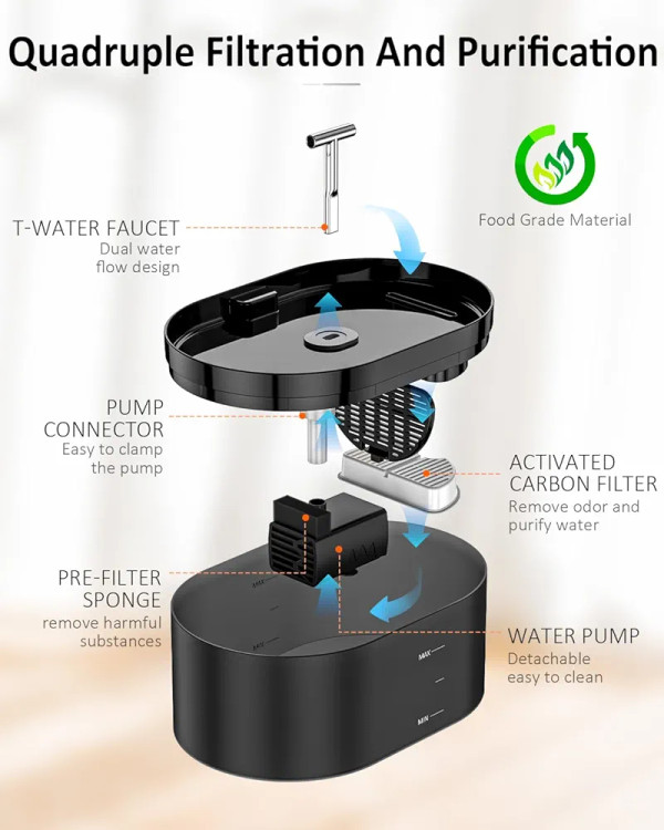 شبیهسازی آب روان طبیعی برای جذب غریزی حیوانات خانگی به نوشیدن بیشتر آب، کمک به هیدراتاسیون بهتر و حمایت از سلامت کلیهها.