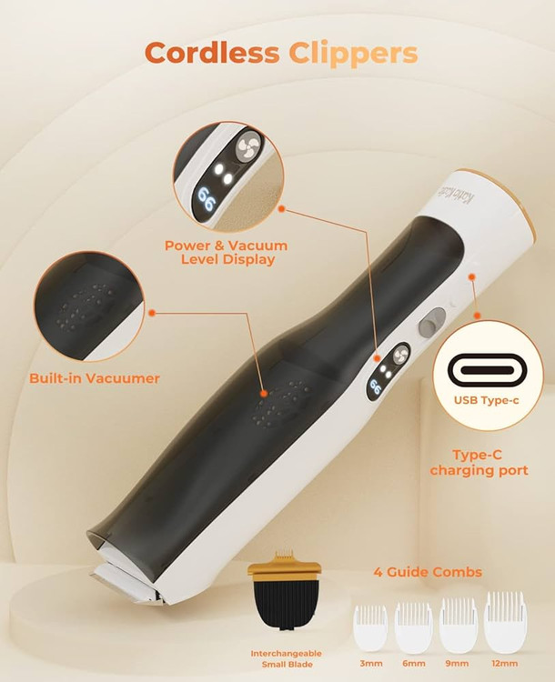 دستگاه اصلاح و جارو برقی سگ و گربه برند KatioKadio – یک دستگاه چندکارهٔ نظافت و آرایش حیوانات خانگی است که وظایف اصلاح مو، جمعآوری موهای ریخته و مکش آنها همزمان را انجام میدهد.