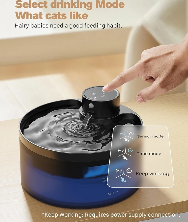 سنسور حرکتی عالی: فواره آبخوری برای گربه، سنسور حرکت دارای 3 حالت برای انتخاب است: (1) حالت القایی: وقتی گربه نزدیک فواره آبخوری گربه است و فاصله تشخیص 1.5 متر است، شروع به کار میکند. (2) حالت تایمر: هر 15 دقیقه، آب به مدت 15 ثانیه جریان مییابد و چرخه تکرار میشود. (3) کار مداوم: فواره آبخوری گربه همیشه در حالت خروجی آب است (این حالت باید به برق وصل باشد).