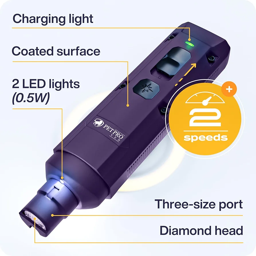 سوهان ناخن شارژی حیوانات خانگی PETPRO با دو سرعت + ناخن‌گیر و انبر اصلاح | بی‌خطر، کم‌صدا و حرفه‌ای برای سگ و گربه