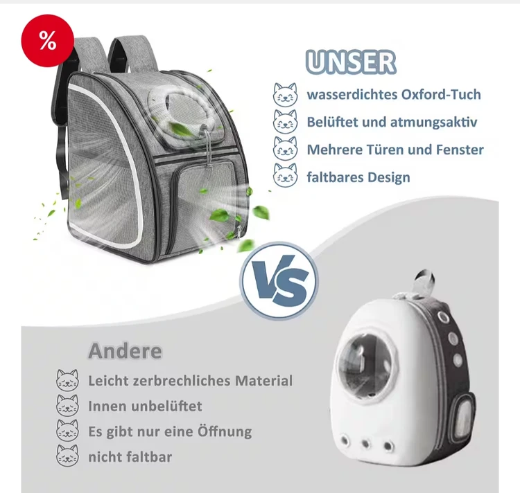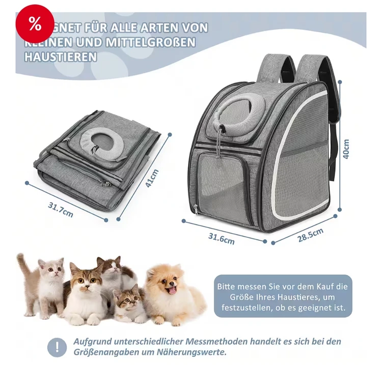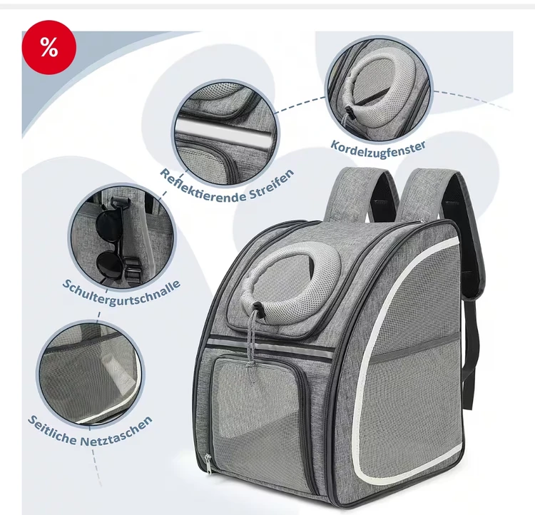 کیف حمل حیوانات خانگی، کولهپشتی با پنجره توری برای سگ و گربه، تاشو، مناسب تا وزن ۸ کیلوگرم، ساختهشده از پارچه آکسفورد ضدآب با فضای زیاد