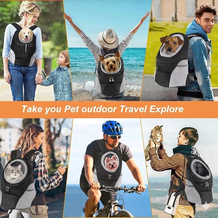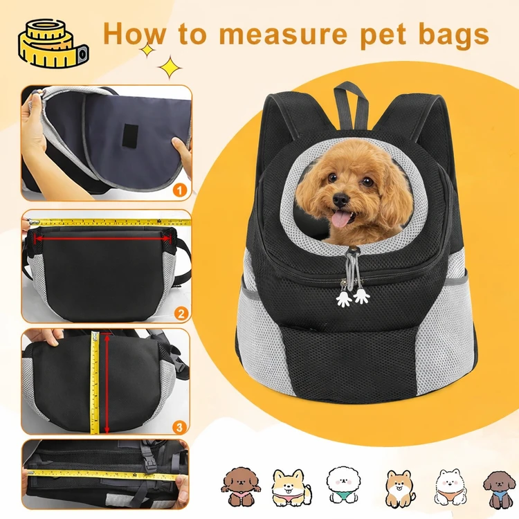 کیف حمل سگ خانگی برای فضای باز، کیف جلویی سگ، کولهپشتی دوبند قابلحمل برای سفر، کولهپشتی توری با امکان بیرون بودن سر برای حمل سگ یا گربه (مشکی، سایز S) برند Generic