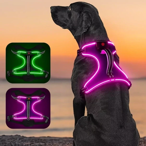 قلاده چراغ دار ، قلاده کتفی LED سایز M رنگ چراغ سبز مدل 21328 برند YIAZIM