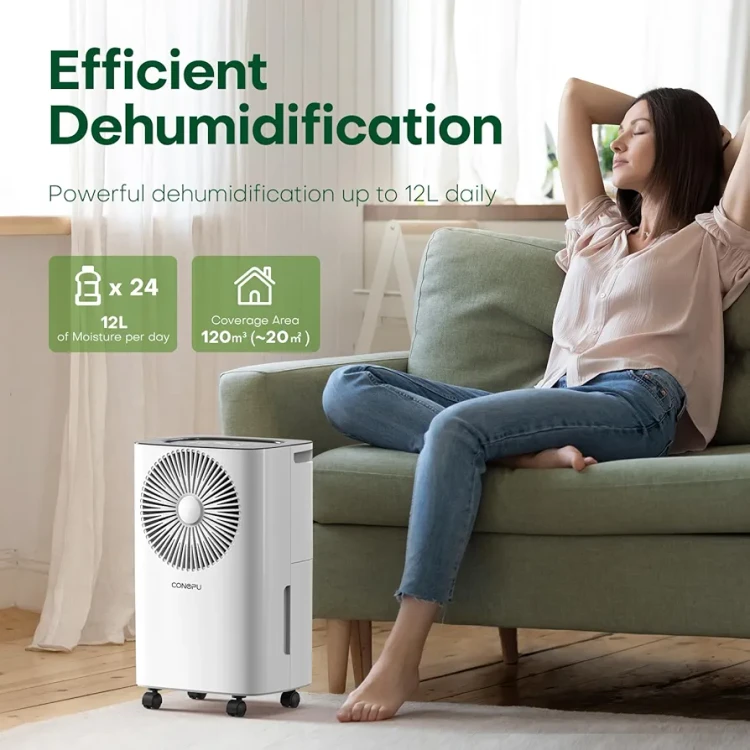 رطوبت گیر برند CONOPU با ظرفیت رطوبت گیری 12 لیتر در روز و مخزن 2.5 لیتری و شلنگ تخلیه مخزن آب - حفاظت از خانه و سلامتی شما در برابر رطوبت