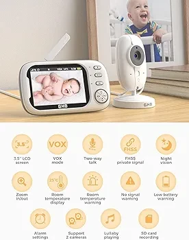 دوربین مراقبت کودک مانیتور دار با وای فای داخلی برند GHB مدل ABM600 با مانیتور 3.5 اینچی و کیفیت تصویر HD