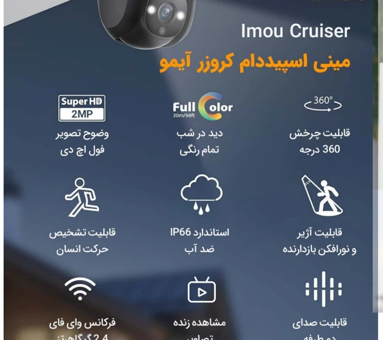 دوربین مداربسته اسپید دام آیمو 2MP مدل Imou Cruiser IPC-S22FP یک دوربین مداربسته با قابلیت های پیشرفته است که می تواند به شما کمک کند تا خانه و محل کار خود را در هر شرایطی محافظت کنید. این مدل دوربین مداربسته آیمو با قابلیت چرخش 355 درجه در افق و 90 درجه در عمود است. این قابلیت به دوربین امکان می دهد تا یک منطقه وسیع را تحت پوشش قرار دهد و هیچ زاویه ای را از قلم نیندازد.