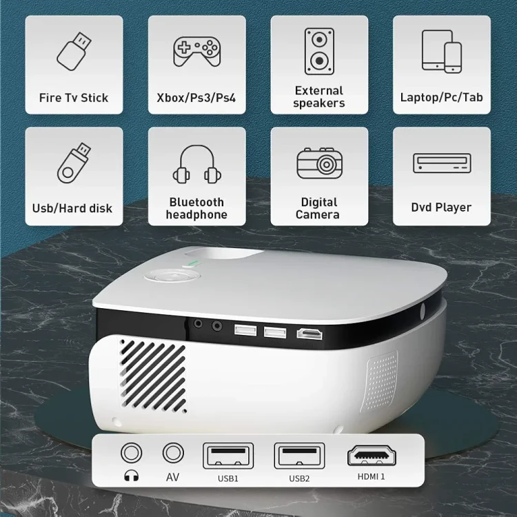✔【سازگاری چند رسانهای و کیس پددار چند منظوره】با خروجی HDMI / 2 پورت USB / AV (YPbPr) / جک هدفون 3.5 میلیمتری. پروژکتور بلوتوث وای فای WiMiUS S25 با Amazon Fire TV Stick، پخش کننده DVD، Xbox، لپ تاپ، USB، کامپیوتر، هدفون، بلندگوی خارجی 2.0، آیفون، اندروید، گوشی های هوشمند iPad، PS3، PS4، کنسول بازی PS5 و غیره سازگار است. به لطف اتصال بلوتوث و وای فای فوق العاده قابل حمل و کاربردی است، می توان از آن برای مهمانی های باغ، سینمای خانگی، کمپینگ در فضای باز و غیره استفاده کرد.