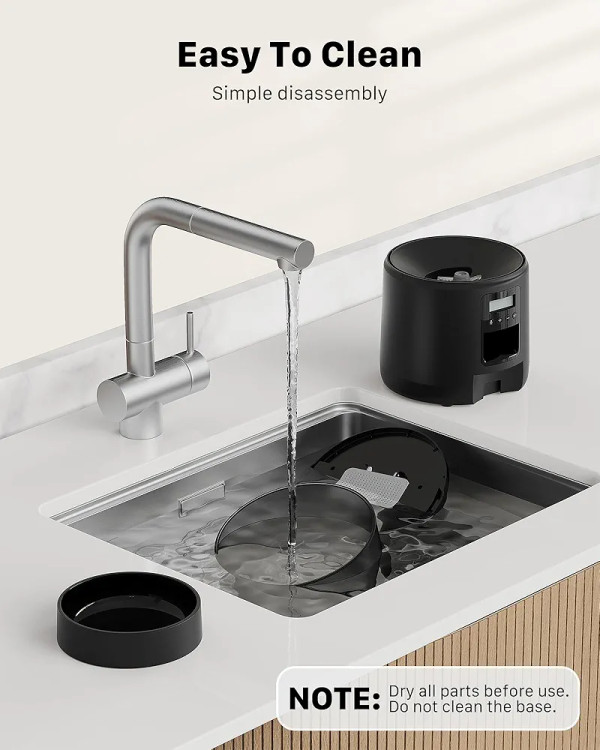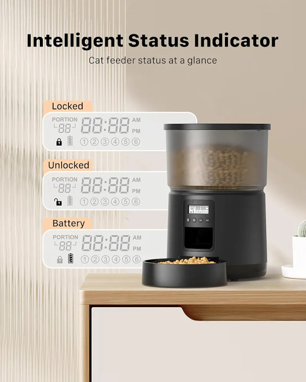 این دستگاه هوشمند با امکان تنظیم ۱ تا ۶ وعده غذا در روز (هر وعده تا ۹ بخش ۱۱ گرمی)، به شما کمک میکند رژیم غذایی دقیق و سالمی برای حیوان خانگیتان ایجاد کنید. حیوان شما همیشه غذای تازه و مقوی در اختیار دارد و شما هم میتوانید با خیال راحت به کارها یا سفر خود برسید.