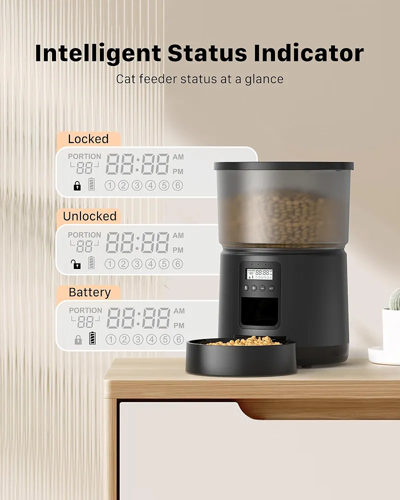 ⚡ منبع تغذیه دوگانه: اتصال به برق و پشتیبانی از باتری، بنابراین حتی در زمان قطعی برق نیز غذادهی ادامه دارد.