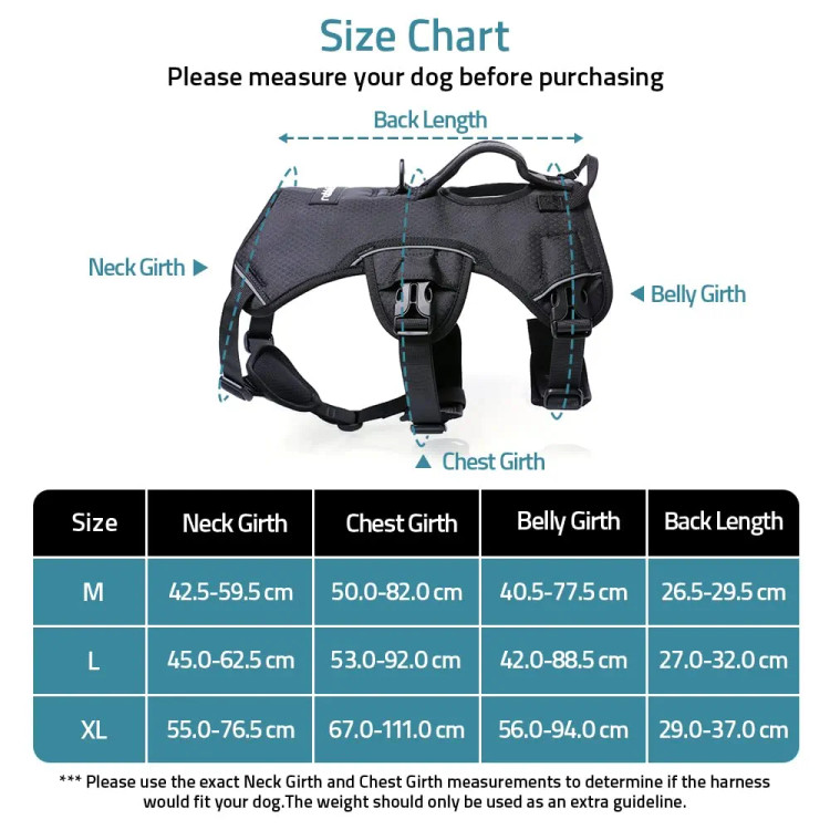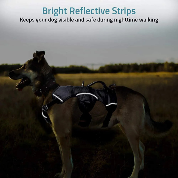 قلاده سگ rabbitgoo ضدکشش – قابل تنظیم برای سگهای متوسط و بزرگ، سایز M، رنگ مشکی، دارای دستگیره پشتی و بندهای بازتابی، طراحی جلیقهای نرم و راحت، مناسب آموزش، پیادهروی و استفاده در خودرو(سایز بندی داخل توضیحات)..