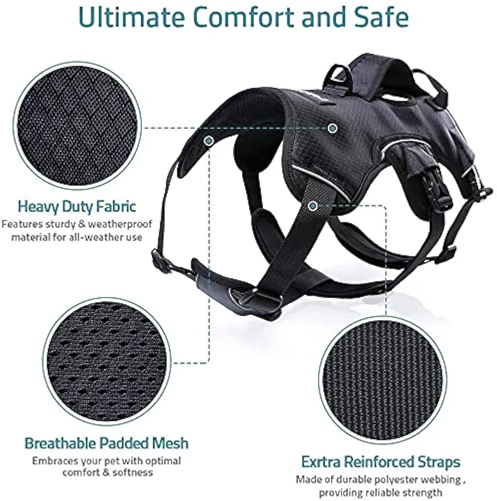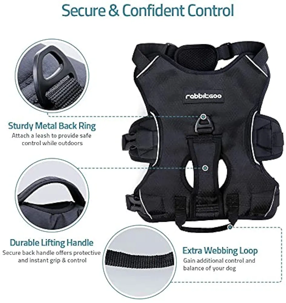 قلاده سگ rabbitgoo ضدکشش – قابل تنظیم برای سگهای متوسط و بزرگ، سایز M، رنگ مشکی، دارای دستگیره پشتی و بندهای بازتابی، طراحی جلیقهای نرم و راحت، مناسب آموزش، پیادهروی و استفاده در خودرو(سایز بندی داخل توضیحات)..