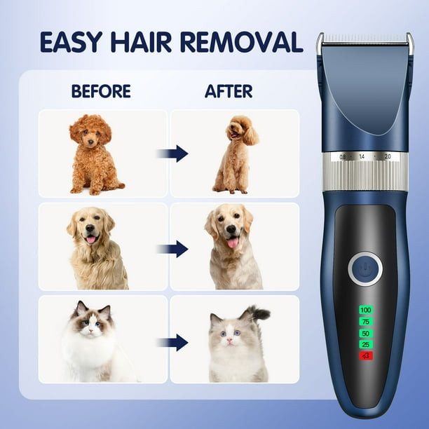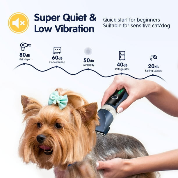 ماشین اصلاح موی سگ و گربه شارژی کم‌صدا مدل حرفه‌ای – ست کامل آرایش حیوانات خانگی با شانه‌های راهنما و قیچی استیل، باتری 2000mAh، مناسب موهای ضخیم و حساس
