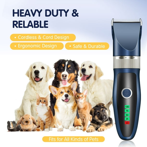 ماشین اصلاح موی سگ و گربه شارژی کم‌صدا مدل حرفه‌ای – ست کامل آرایش حیوانات خانگی با شانه‌های راهنما و قیچی استیل، باتری 2000mAh، مناسب موهای ضخیم و حساس