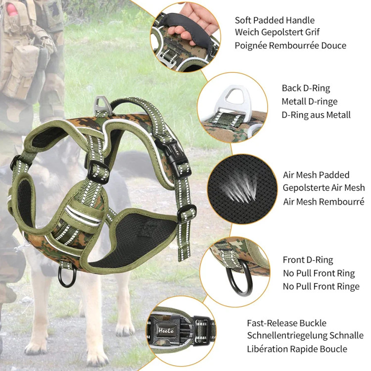 🔹 پوشیدن و درآوردن آسان: هارنس سگ HEELE با کمربند سینهای قابل تنظیم و ۲ سگک آزادشونده سریع، امنیت سگ را تضمین کرده و امکان تنظیم دقیق متناسب با بدن سگ را فراهم میکند.