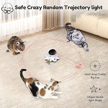 اسباببازی هوشمند گربه GoldenSun با طراحی ۲ در ۱، سرگرمی و تحرک را برای گربههای خانگی شما تضمین میکند. این وسیله با الگوهای منحصر به فرد نقطه و ستاره و حرکت تصادفی ۳۶۰ درجه در سه سرعت مختلف، حس شکار گربه را تحریک میکند. پرها بهطور تصادفی از ۸ سوراخ ظاهر میشوند تا گربه شما بپرد و بازی کند، بدون نگرانی از آسیب به وسایل خانه.