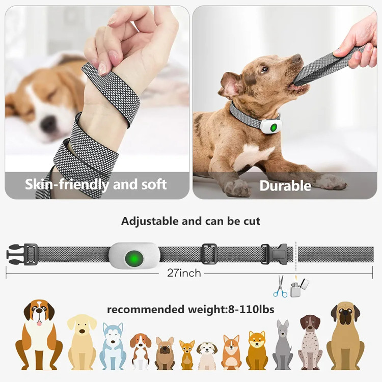 قابل تنظیم و ضد آب: بند نایلونی نرم، مناسب گردن ۶ تا ۲۷ اینچ و سگهای کوچک، متوسط و بزرگ (ریموت ضد آب نیست)