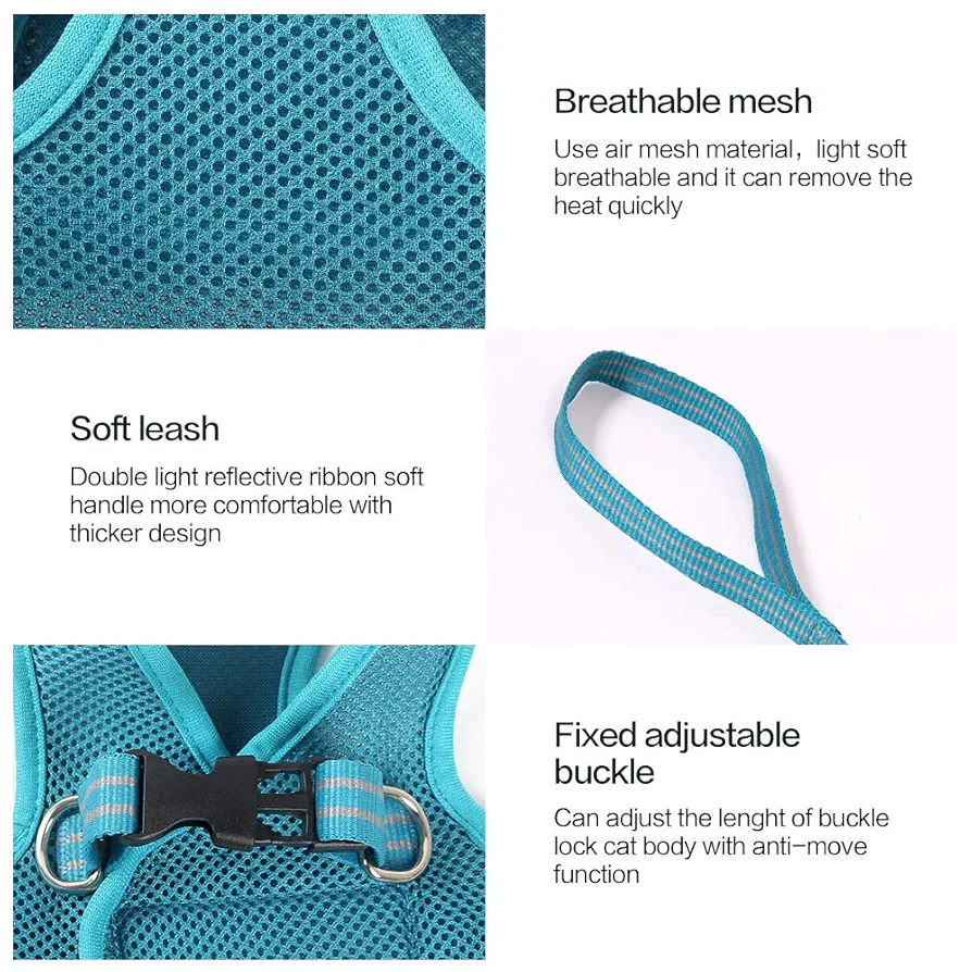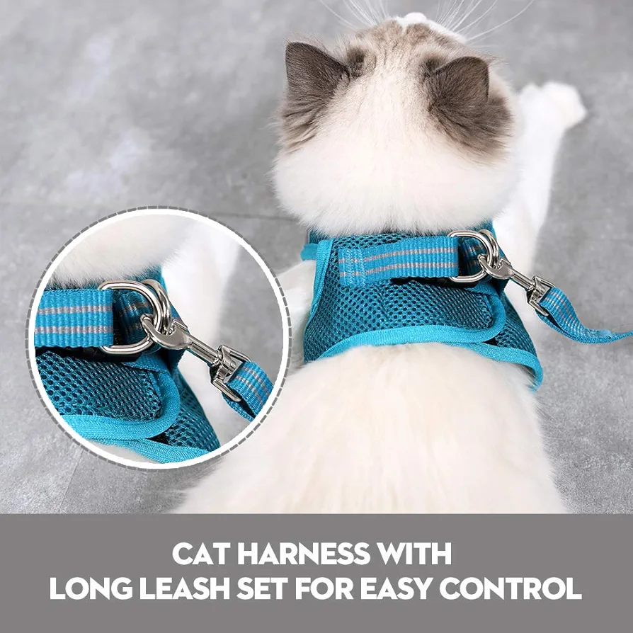 قلاده پیادهروی گربه Doton (xs)دور کمر ۲۵_۳۰سانتی متر وزن ۱.۵_۲.۵ کیلوگرم، جلیقه تنفسی قابل تنظیم با نوار بازتابدهنده و قفل ضد فرار، ست قلاده گربه برای بیرون