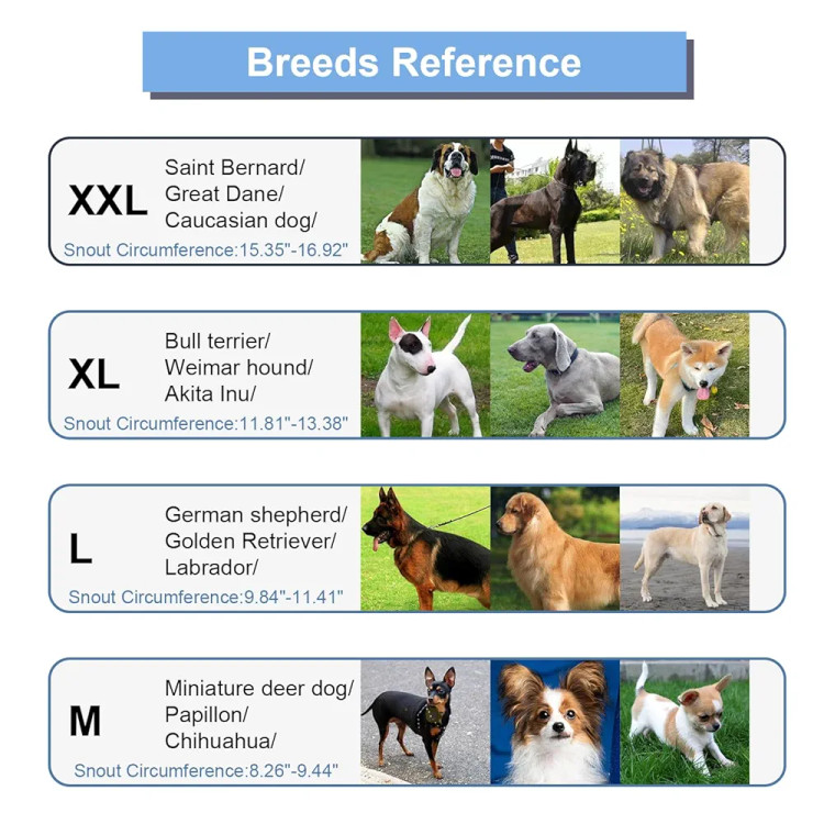 📏 ابعاد: طول پوزه ۳.۵۴ اینچ، محیط ۹.۸۴ – ۱۱.۴۱ اینچ (مناسب سگهای متوسط)